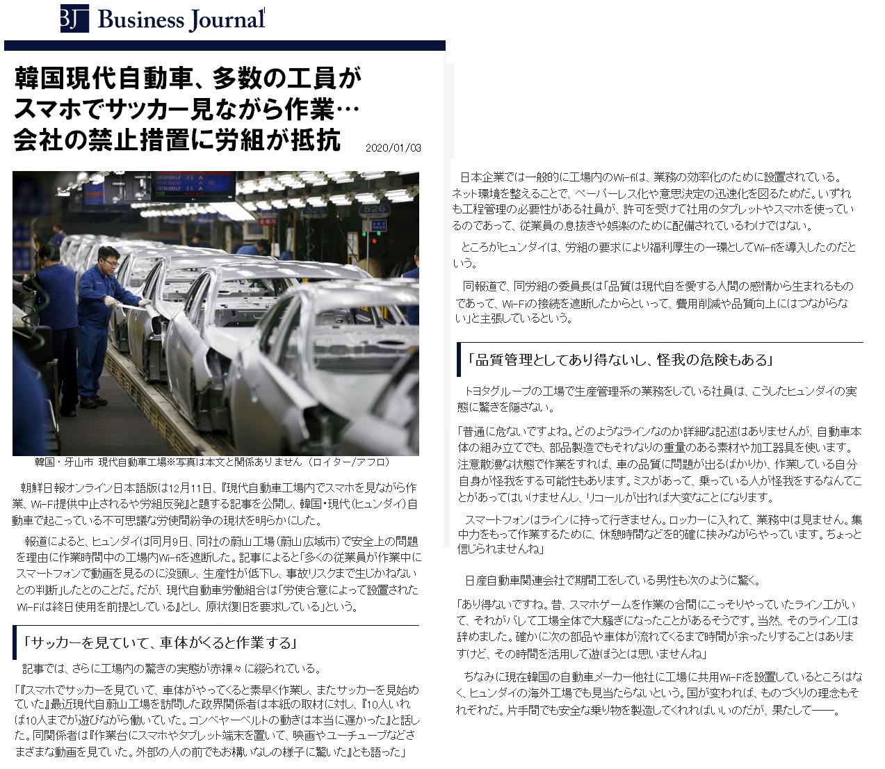 【韓国】現代自動車、工員がスマホでサッカー見ながら作業…会社の禁止措置に労組が抵抗 2020/01/03