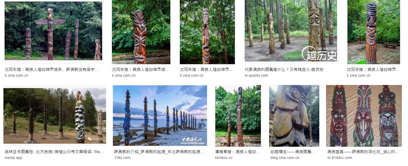 添付の写真はgoogleで『 Totempole 满族 』 で検索したものです。