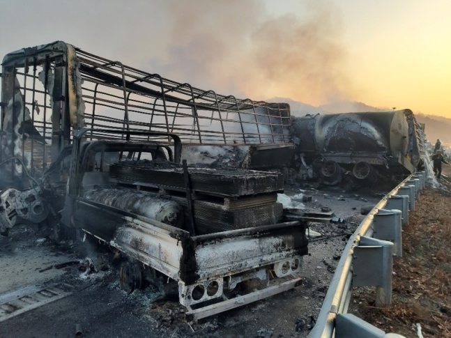 常駐永川高速道路で14日、「ブラックアイス」で車両連鎖追突事故が相次いで発生して7人が死亡、32人が負傷した。
