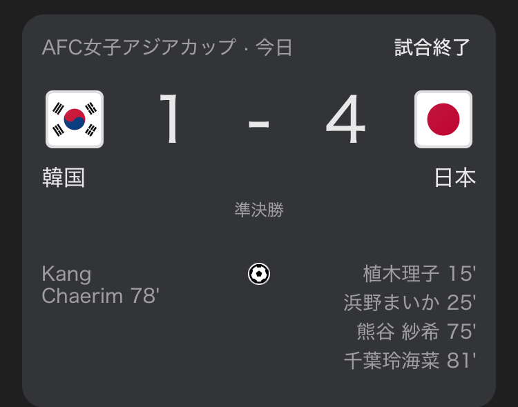 ガチでもなく、強い北朝鮮もいない、という中の優勝は締まらないよね