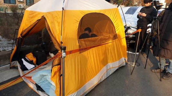 「反日偏向教育」暴露者チェ・インホ君が校門前で「1人テントデモ」を開始