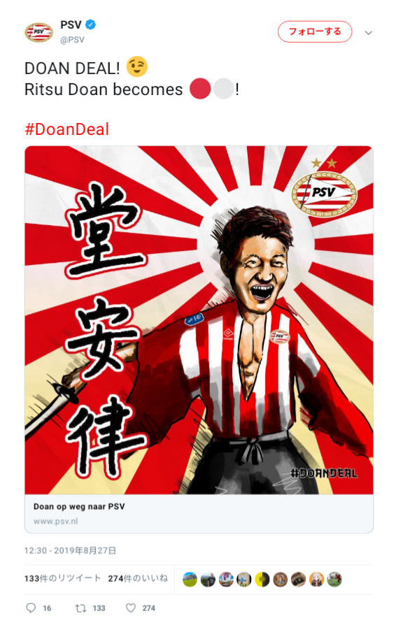 そういえば、堂安がPSVに入団の時に出された旭日マークもクレームが出て、なぜか韓国語で謝罪文だしてたね。