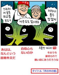 韓国は建国以来、日米近代国家のルールでいわばぬるま湯に浸かってたから、いきなり喉元にナイフを突きつけられたような恐怖と驚きと、先祖代々の上下関係を改めて思い出したんだろう。