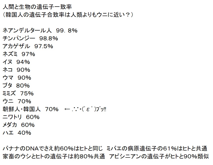 人間との遺伝子一致率70%、ヒトモドキであることが判明した朝鮮民族w