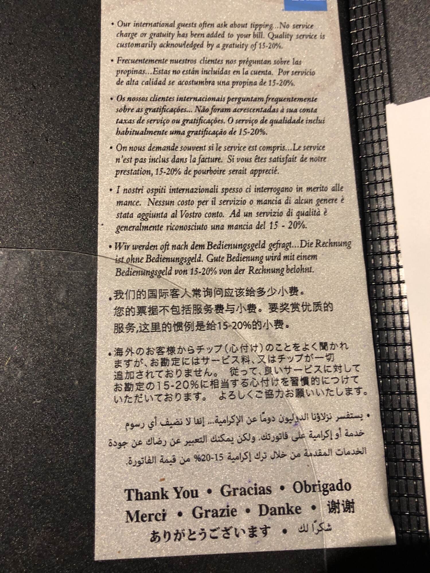 1名無し2019/12/23(Mon) 01:32:23ID:U1MTM4MzU(1/2)NG報告コレは一応、高級レストランに位置付ける店のアメリカのチップ文化を説明する注意書きらしいのだが、韓国語しか喋れない違法売春婦や半島から逃げ出し、夢いっぱいで渡米しホームレスになった朝鮮人もいるというのにあまりの仕打ち>>3>>6>>702名無し2019/12/23(Mon) 03:32:49ID:I3MDY5ODk(1/1)NG報告『良いサービスに対して‥‥』って書いてあるけど日本人から見て日本より良いサービスが見れるのか?韓国人から見たらとても良いサービスに見えるのだろうけどw13名無し2019/12/23(Mon) 04:16:45ID:Y2MDM3Mzg(1/1)NG報告>>1最初から「朝鮮人お断り」の店なんじゃない?>>414名無し2019/12/23(Mon) 04:23:41ID:U1MTM4MzU(2/2)NG報告>>3そんな事したら全民族で店のSNSに突撃してくるから、あからさまにお断りはしてないだろう15名無し2019/12/23(Mon) 07:34:45ID:I1MjYzMzQ(1/1)NG報告韓国人の免罪符16名無し2019/12/23(Mon) 11:52:48ID:IzNjM2MDg(1/1)NG報告>>1正直言ってチップ文化は嫌いだ。本当に良いサービスに対して払うのは構わないが、チップが当たり前になっていて払わなければ気分が悪い思いをする。明らかにチップ有りきの文化になってしまっている。17独り言2019/12/23(Mon) 11:54:38ID:M0OTU1Nzc(1/1)NG報告>>1ホームレスは高級レストランに行けない件18名無し2019/12/23(Mon) 13:13:01ID:AyNDIyMjU(1/1)NG報告韓国人と犬はお断りて書いてないだけ良心的19名無し2019/12/23(Mon) 13:30:53ID:IwMzcxMjU(1/1)NG報告チップ触った汚い手で料理運んでくる国なんて行きたくないわ1