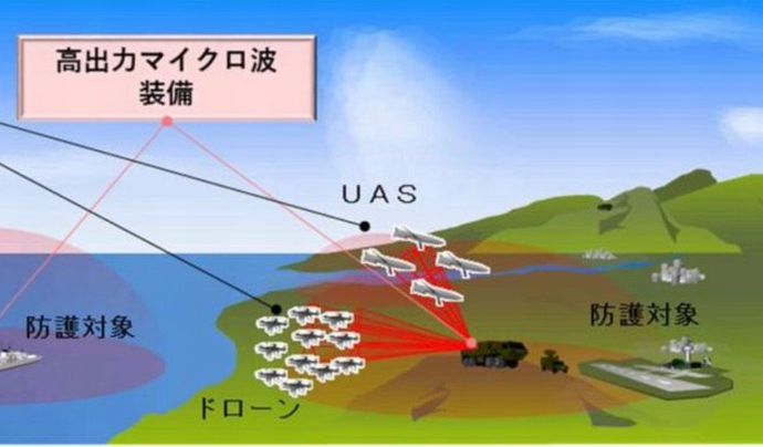 防衛装備庁電子装備研究所は、高出力のマイクロ波をビーム照射してドローン(小型無人機)を撃ち落とす実験に成功した。マイクロ波によってドローンの電子回路に誤動作を起こす。ビーム照射の方向を素早く切り替えられる技術を使うため、多数のドローンが同時に襲ってくる攻撃にも対応できる可能性がある。テロリストによるドローン攻撃や、無人航空機・巡航ミサイルによる攻撃に対処する新しいタイプの装備として開発を進める。