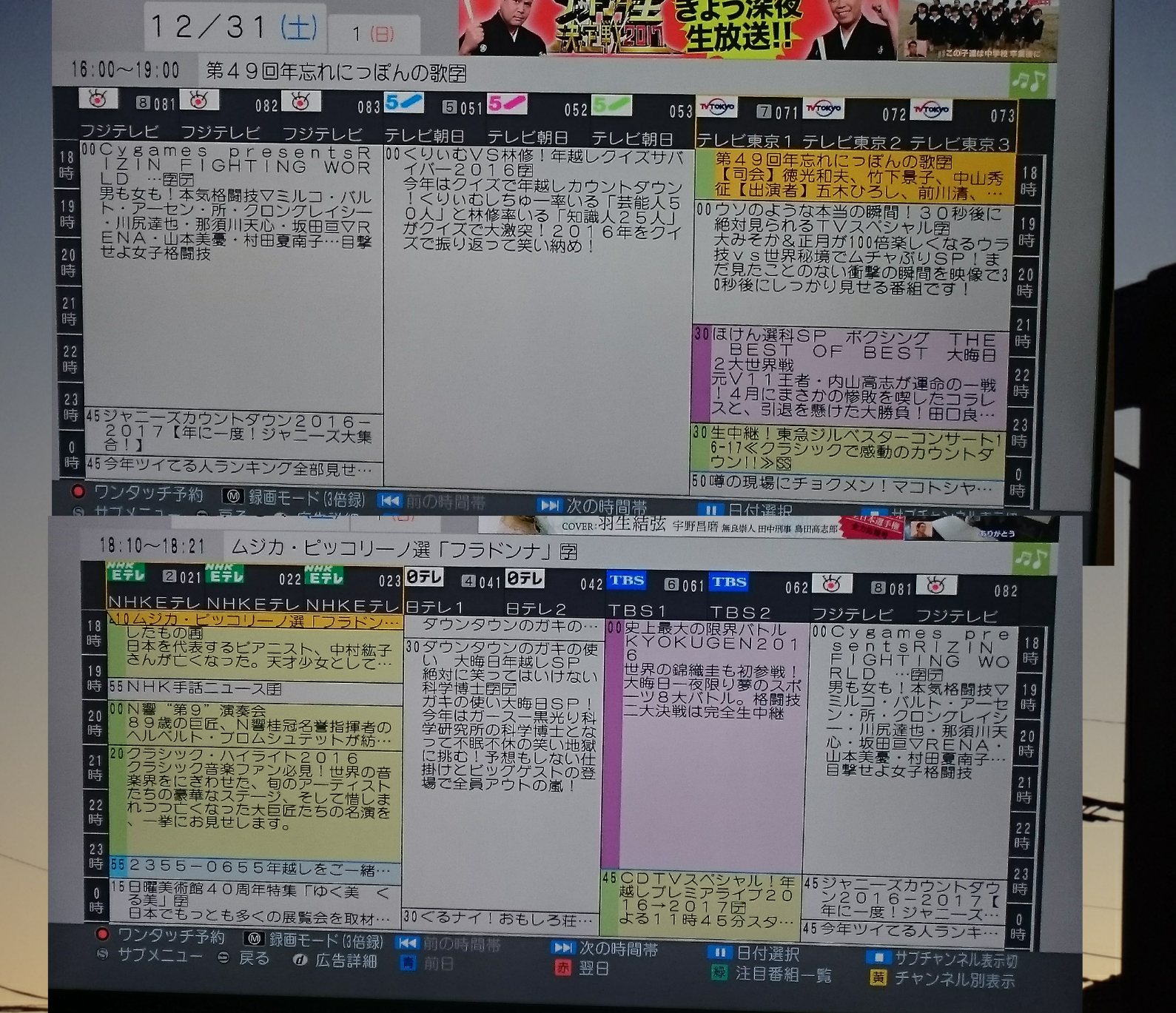1名無し2016/12/31(Sat) 18:21:35ID:MzNTc1NjU(1/8)NG報告どの番組みてますか?写真貼ってみましょう12일본 음악 좋아2016/12/31(Sat) 19:20:32ID:cwNzA2ODc(1/1)NG報告집에 TV가 없다13名無し2016/12/31(Sat) 19:24:19ID:MzNTc1NjU(2/8)NG報告韓国はテレビ見ない感じですか?ちなみに、今こんなの見てます14名無し2016/12/31(Sat) 19:30:07ID:E1MDc1NzM(1/2)NG報告RIZIN>>615名無し2016/12/31(Sat) 19:36:58ID:IzMDQ5MzE(1/1)NG報告ガキの使いやあらへんで笑ってはいけない>>716名無し2016/12/31(Sat) 19:41:07ID:MzNTc1NjU(3/8)NG報告>>4年末格闘技RIZIN!17名無し2016/12/31(Sat) 19:51:21ID:MzNTc1NjU(4/8)NG報告>>5他の番組も気になる(^-^;でも安定のテレ東、トランプマンです18名無し2016/12/31(Sat) 19:57:37ID:E1MDc1NzM(2/2)NG報告あれ?なんでリシンになってる?ライジンって入れたつもりなのにw19名無し2016/12/31(Sat) 20:19:44ID:MzNTc1NjU(5/8)NG報告軽トラに風呂桶載せてどこでも絶景露天風呂って企画も面白い次はロシアだって110名無し2016/12/31(Sat) 20:34:44ID:MzNTc1NjU(6/8)NG報告ホントにやるから凄いそして-12℃の広場で一晩テント…芸人大変w111名無し2016/12/31(Sat) 20:46:49ID:MzNTc1NjU(7/8)NG報告公園の真ん中とか凄い…良くやるね(^_^;112名無し2016/12/31(Sat) 21:38:28ID:MzNTc1NjU(8/8)NG報告しょうもない企画もあったけどテレ東なかなか楽しかった(^0^)ノ1