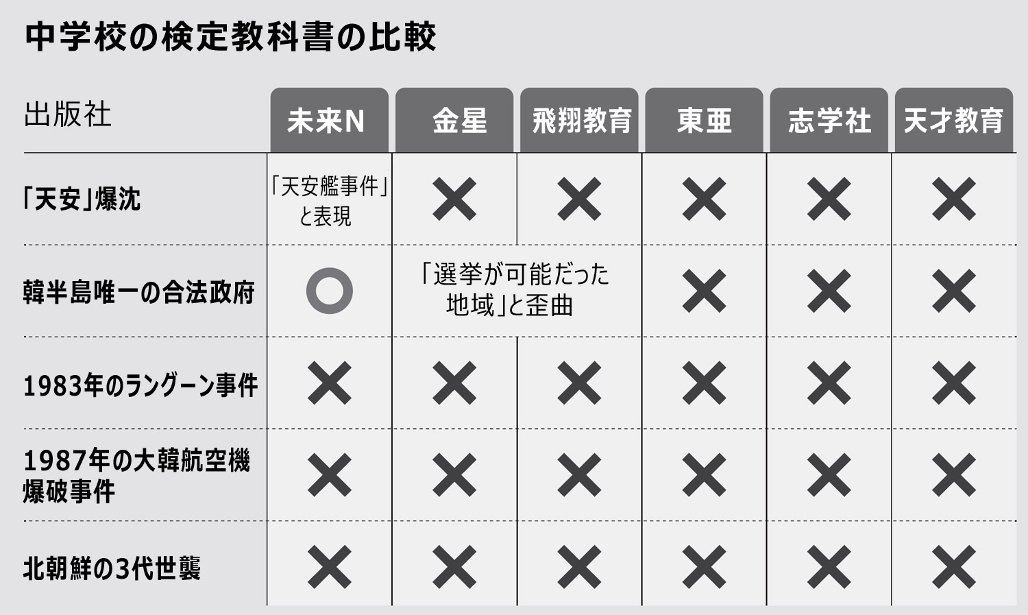 >87年の大韓航空機爆破事件など北朝鮮の挑発を取り上げた教科書もなかった。