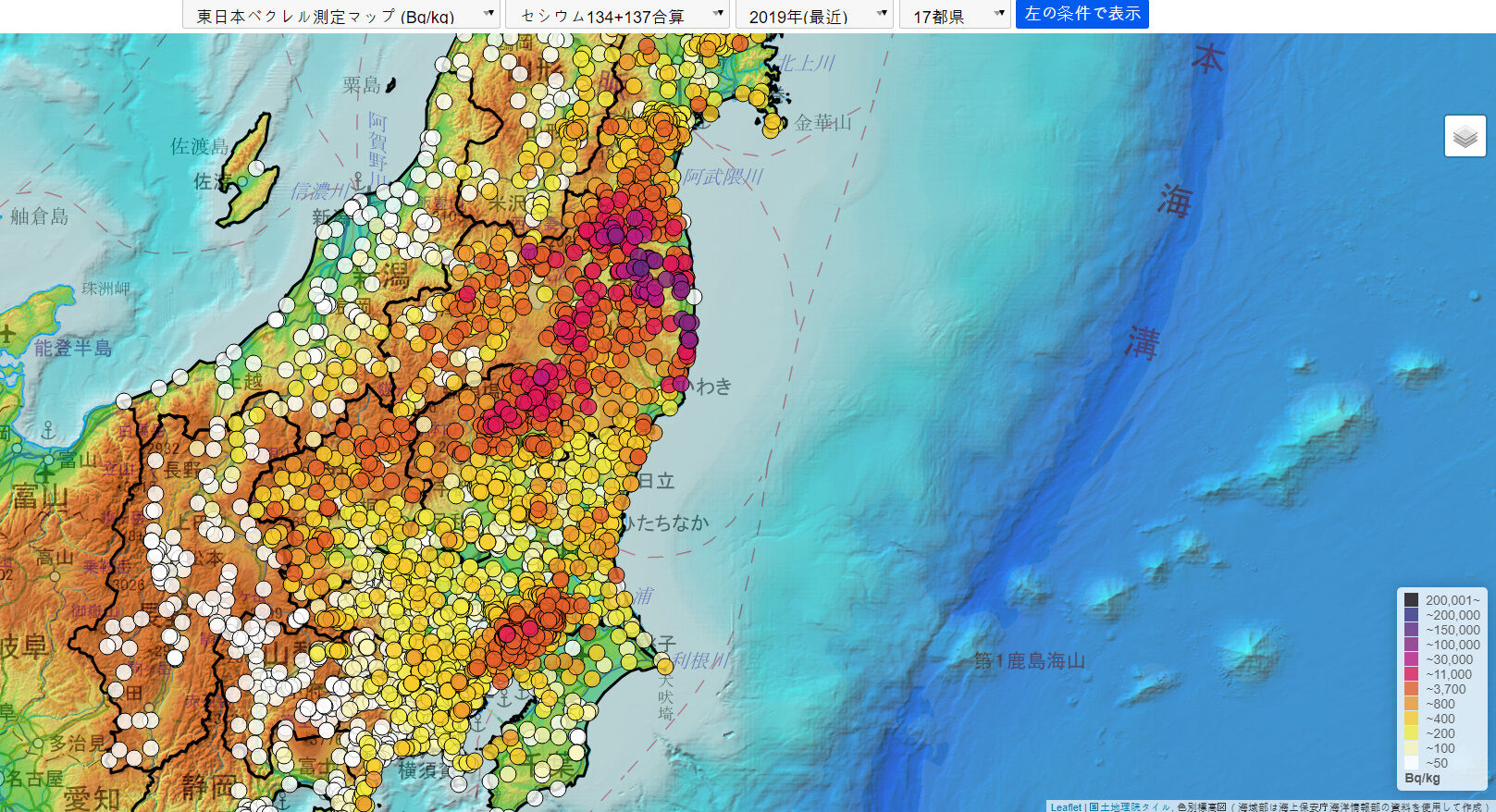 居住可能か否かは空間線量、及び食品中の放射性物質含有量がメイン。土を直に食う人間はいないんだから、土壌汚染で要監視なのは陸水によって汚染が濃縮されそうなポイント限定で充分だろう。>>105