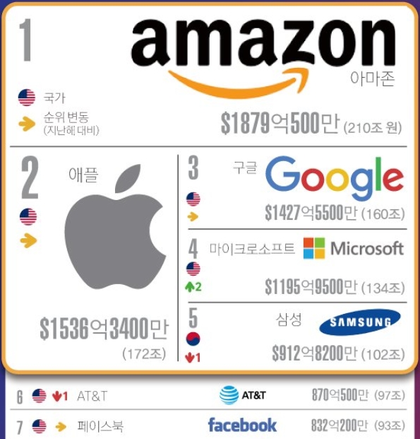 삼성은 브랜드 가치 세계에서 5위 기업이다.>>1