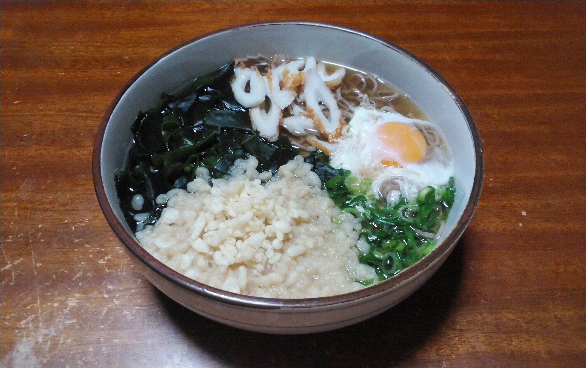 上に乗せる具は卵にワカメ、天かすにチクワでいいだろう
