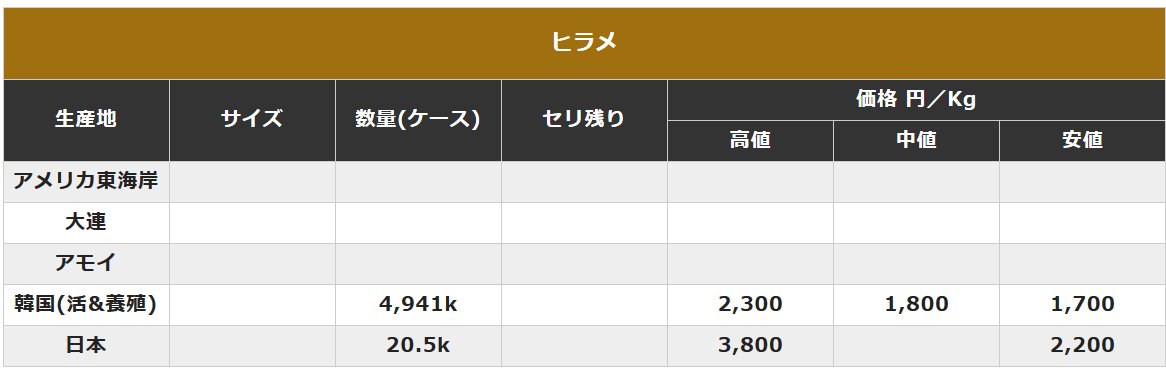 画像は(日本) 豊洲市場 中央卸売市場 卸売り価格