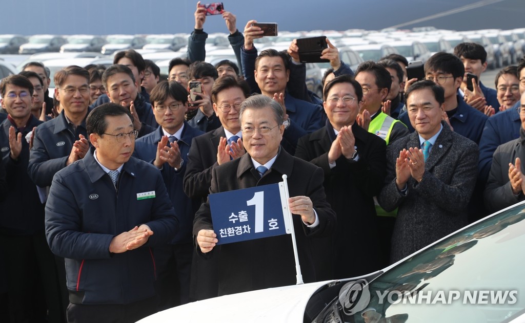 韓国から今年最初に輸出される電気自動車(EV)を載せた船が3日、ソウル南方の京畿道・平沢港を出港した。
