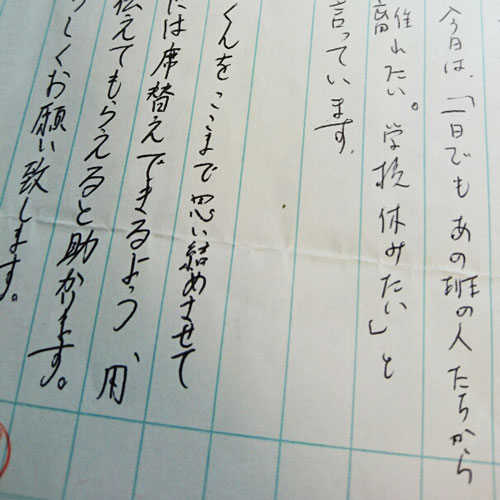 一方で姉の様子を見て、1学期の終業式が近づいてきたことも分かったようです。「死」という言葉が出たのは、ちょうどその頃でした。自分だけが身も心も粉にして考えているのに、学校にいる他のクラスメイトたちの日常は普通に過ぎていき、夏休みを普通に迎えるのか……。そんな思いが複雑に絡まって、諦めの境地に達した末の言葉だったのかもしれません。