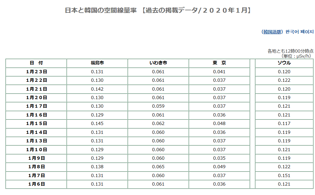 【定点観測】日韓の放射線量と大気汚染度を比較するスレ