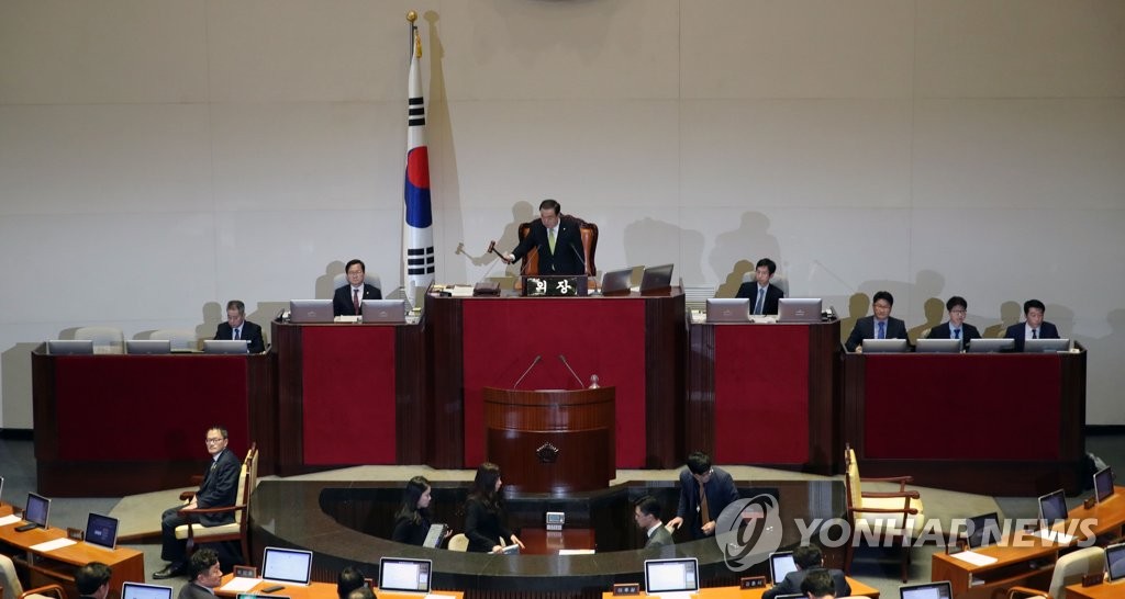 韓国国会は13日の本会議で、刑事訴訟法改正案と検察庁法改正案を賛成多数で可決した。同法案に反対してきた最大野党「自由韓国党」は採決の際に退席した。