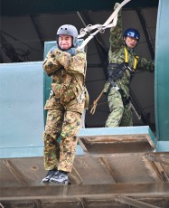 小泉進次郎防衛相が「降下訓練始め」を視察 高さ11メートルから飛び降り体験