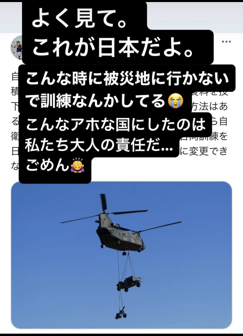 飛び出してから 一降下 二降下 三安全確認 って出来たのかなふつうに考えて、災害後は、国防の危機にあるのではないか