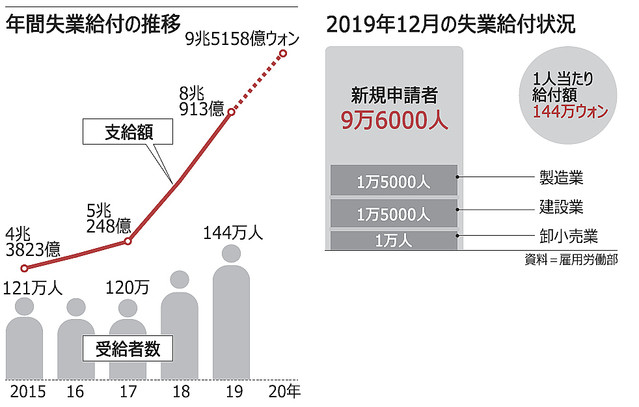景気後退で就職市場に失業者が殺到…5兆→8兆ウォン、韓国の失業給付が2年間で急増