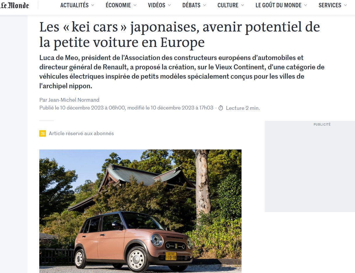 欧州自動車工業会の会長でルノーのゼネラルディレクターであるルカ・デ・メオ氏は、旧大陸において、日本列島の都市向けに特別に設計された小型モデルにインスピレーションを得た電気自動車のカテゴリーを創設することを提案した。