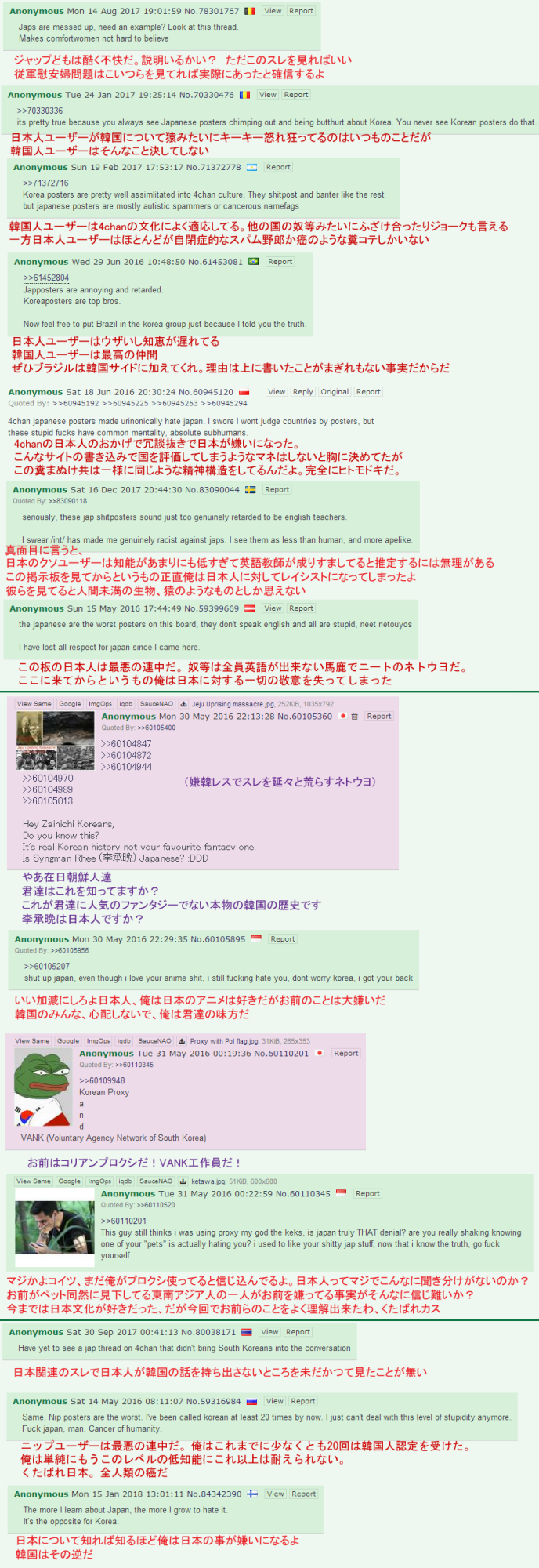 韓国人がスレッドの内容に関係なく日本がー言うところは見たことが何度もあるけど、日本人が韓国の話を関係ないスレッドで持ち出してるところなんて見たことがないしねー>>1
