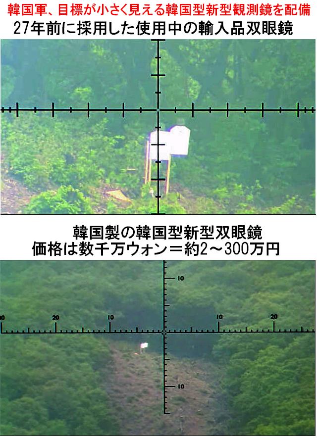 だが、ある関係者は「観測鏡が広い視野も必要とするのは間違いないが、倍率を高めて正確にターゲットを識別する能力もまた有していなければならない」として「数千万ウォン(1000万ウォン=約95万円)する新型観測鏡が、事実上双眼鏡レベルの拡大能力しか持っていないのは残念」と指摘した。そもそも韓国人って、本当に目が見えてるのかねぇ・・・・