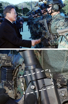 韓国軍関係者は27日、「大統領業務報告のとき特戦隊員が使用したK1Aサブマシンガンの一部に、不良銃床が付いていたことを把握した」と語った。この不良銃床は、業務報告時に撮影された写真にも捉えられていた。文在寅(ムン・ジェイン)大統領が試演に登場した将兵を激励する場面で、銃床がきちんと装着されておらず、銃床と銃本体の間に隙間ができている様子がはっきり写っていたのだ。