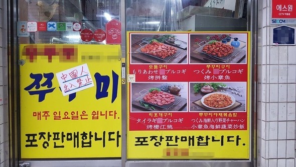この日午後6時に訪れたソウル中区のある料理店の出入り口には、赤い文字で「中国人出入り禁止」という漢字が大きく書かれていた。ここは普段、明洞(ミョンドン)などに滞在する中国人観光客が頻繁に訪れる料理店だ。料理店の店主はハンギョレの取材に、「当然、最近新型コロナのせいでうるさいから案内文を貼ったのだ。今は中国人客を受け入れたくない」と言い、「客を受け入れようと受け入れまいと私の自由だ。世界的にもうるさいから気に障る」と話した。