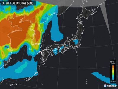 겨울에 육지는 바다보다 차갑기 때문에 거기서 미세먼지가 정체한다.후쿠오카의 ムカデ 화교 여러분 오늘 잠잘 때 한국산 마스크를 꼭 착용해 주세요.
