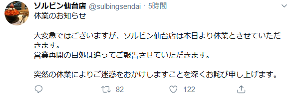 かき氷のソルビン全店舗が突然閉店?