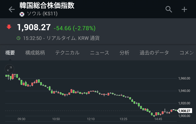韓国市場に天誅がくだったね。