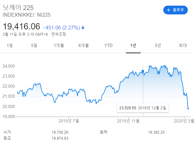 https://www.bloomberg.co.jp/news/articles/2020-03-11/Q70OXBT0G1Kkospi外国人9兆ウォン売り越し