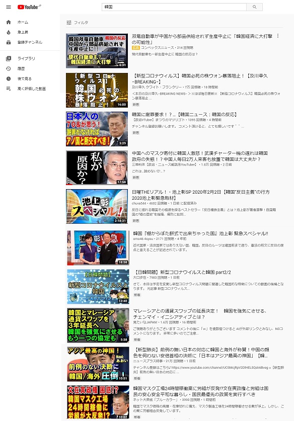 「韓国(日本語) を検索ワードに決めて」、「並び替えをアップロード日順」のみを選択後に、出る検索結果なんだけど…