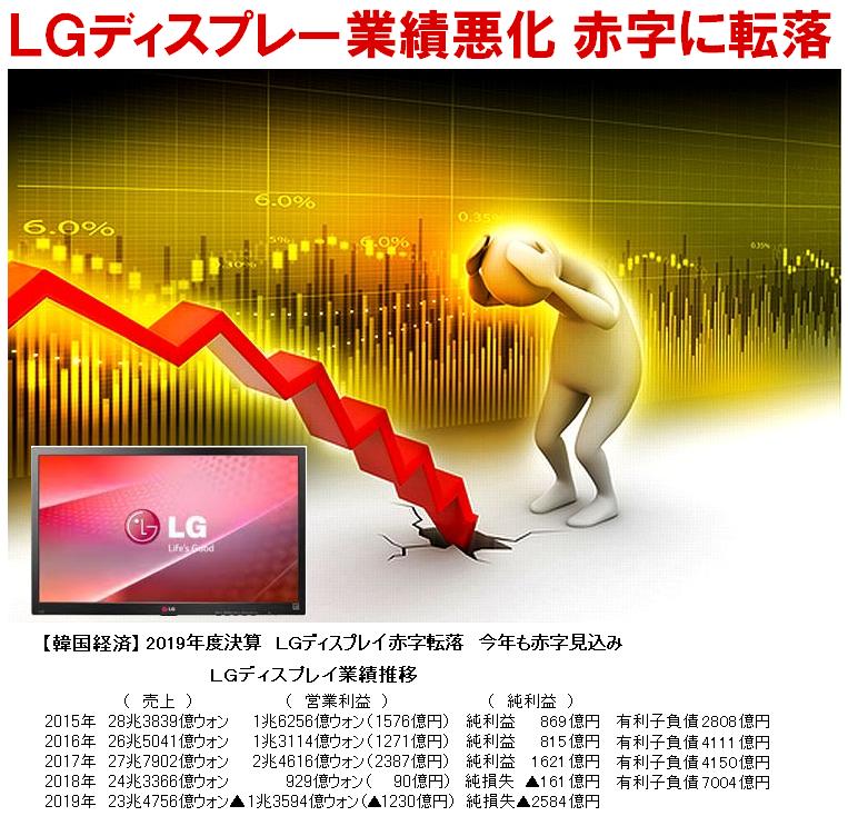 【韓国経済】 2019年決算 LGディスプレイ赤字に転落 損失▲2兆8721億ウォン(2584億円) 2020/02/03
