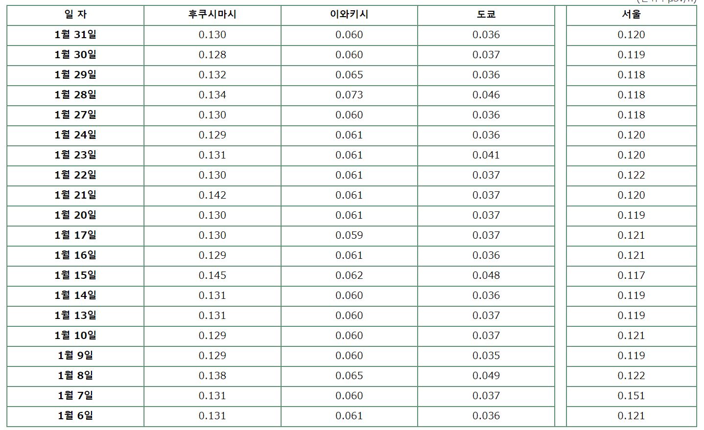 1月7日のソウルの放射線量が異常に多いけど、何があったか説明してくれよ。面白い事に10月は7日+8日も福島超えw