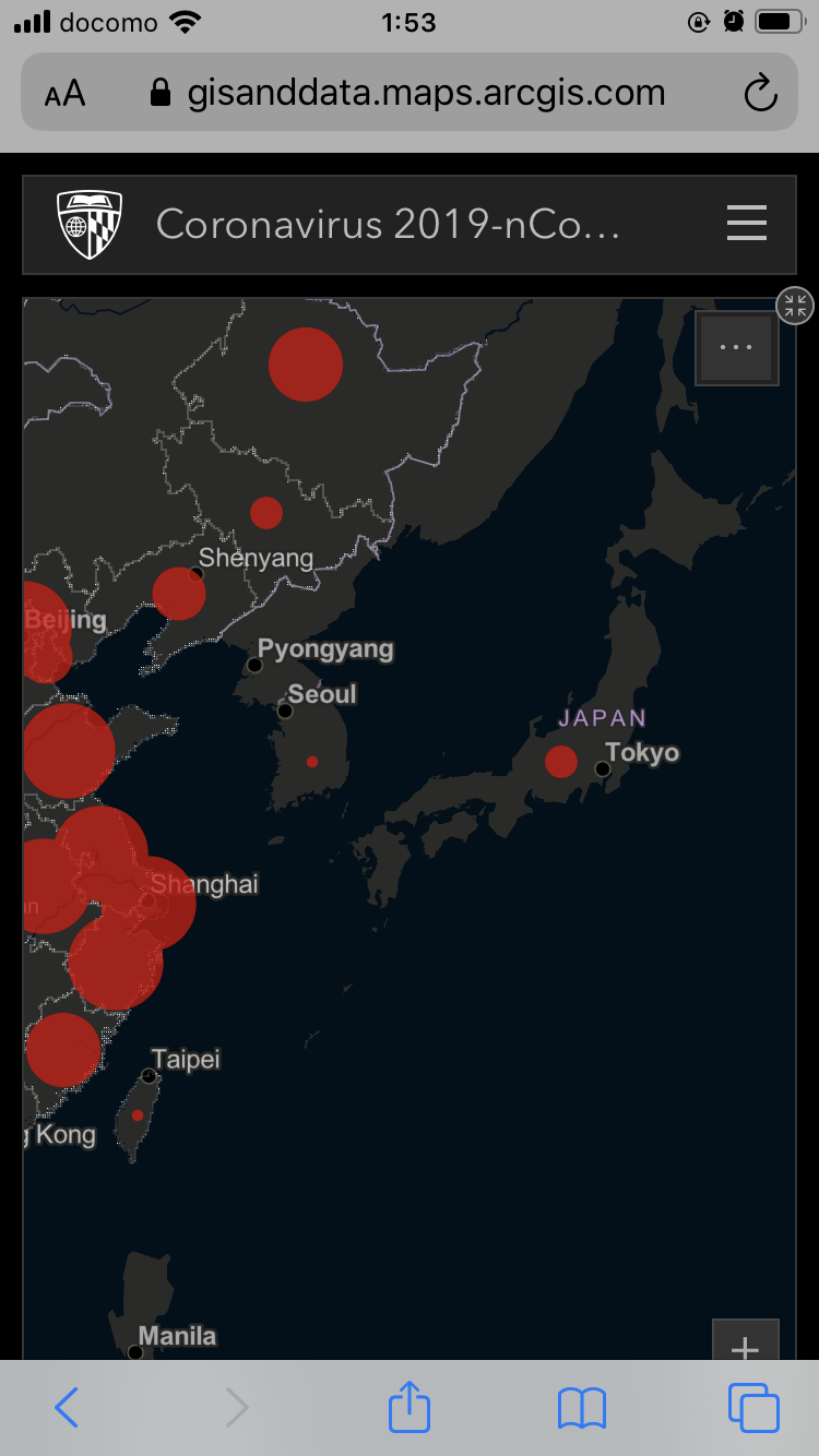 ちょっと更新が遅い、リアルタイム感染者マップ