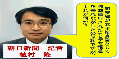 スレタイ詐欺。植村はこの話題に関係ない。朝日の記者であった植村自身が捏造記事を書き、その朝日新聞がその記事をばらまいた