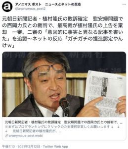 植村隆は、最高裁も認めた捏造記者!そういや、韓国裁判所は慰安婦を強制連行したと認めたよな?