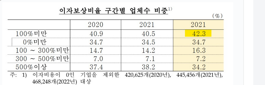営業利益で利払いできないゾンビ企業(利子補償比率が100%未満)数の全企業数に占める割合が、「42.3%」