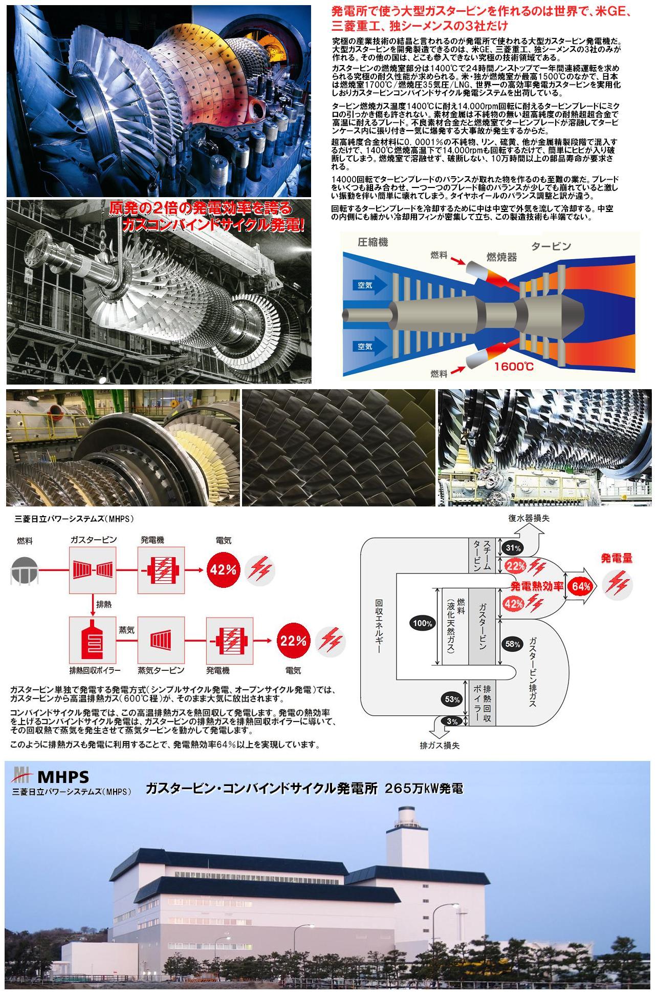 肝心なのは韓国人に産業スパイされないように、その業界に就職させない事。・日本の天然ガス火力発電所の大型ガスタービンはJ形ガスタービン4基構成で265万kW発電 発電効率64%