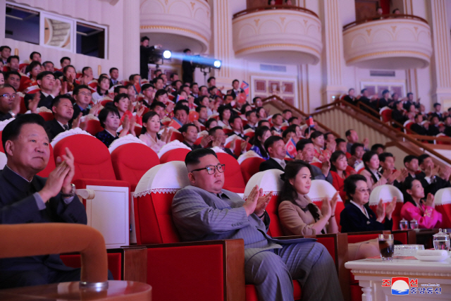김정은 북한 국무위원장이 설 당일인 1월 25일 삼지연극장에서 부인 리설주 여사와 함께 명절 기념공연을 관람했다고 조선중앙통신이 26일 보도했다.