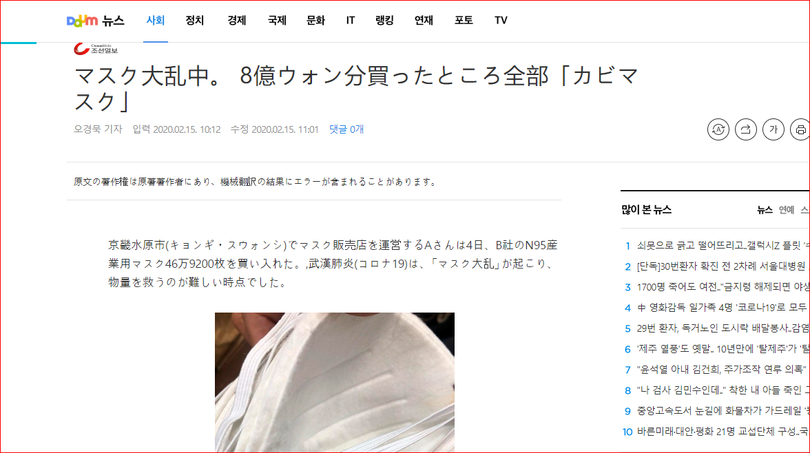 ・中国が自分たちの金で、計画的に韓国のマスクを買い漁る