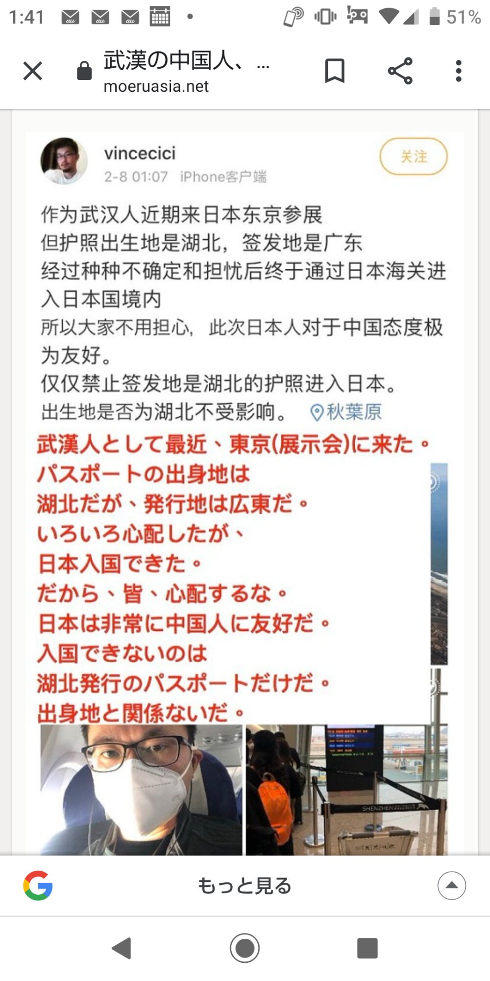 武漢の方が日本より感染する率が低いってコメントをリツイートしたりもしてるオッサン。