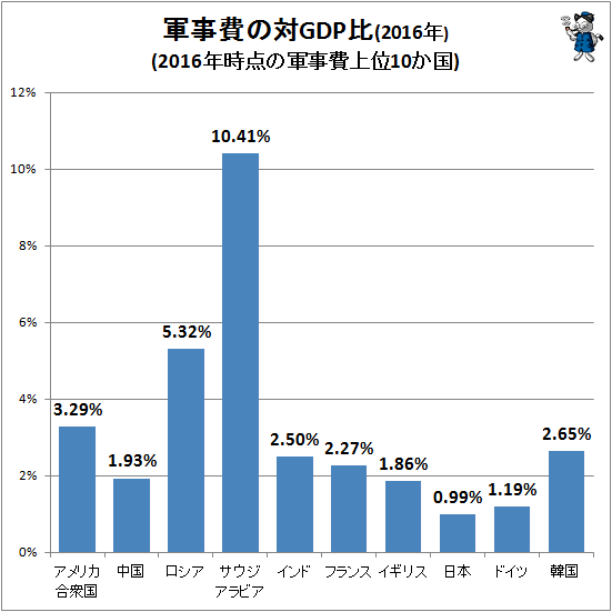 アホか(笑)今見える数字しか追わない辺り、韓国人らしいが、日本は自分でGDP比1%以上軍事費に金を使わないって決めてるだけだ。それでも韓国より、金額的に多いけどな。あ、ついでに言っとくが日本は対外攻撃兵器も一切所持していない。それでも、陸軍以外は韓国より強いと思うがね(笑)