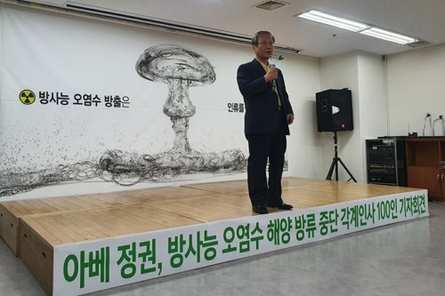高哲煥(コ・チョルファン)ソンシン学院理事長、チョン・カンジャ参与連帯共同代表、チェ・ジェチョン梨花女子大客員教授など100人は18日、ソウル中区(チュング)環境財団レイチェルカーソンホールで記者会見し、「放射能汚染水海洋放流中断のための100人共同声明書」を公開した。