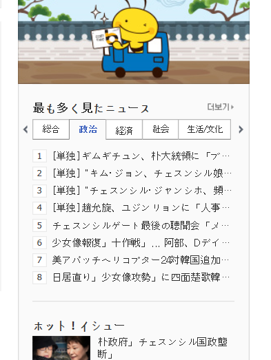 そこの政治カテゴリーだと6位と8位に慰安婦像関連が載っているけど。>>2