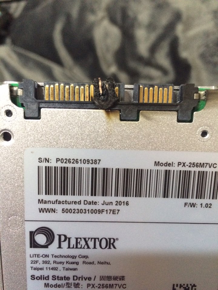 SSD側は基盤なので単純にSSDへのSATAケーブルの斜め刺しショートが