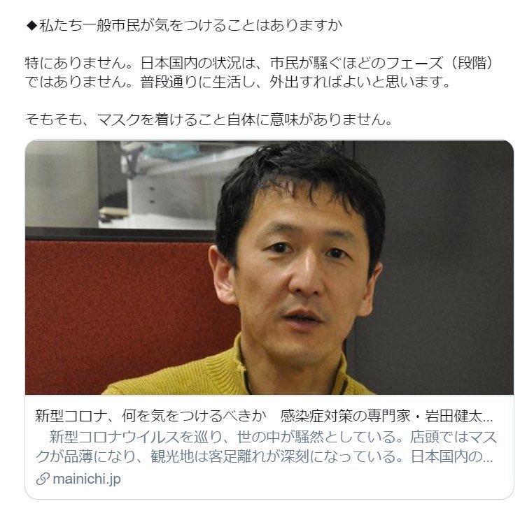 中国やWHOと同罪…は言い過ぎだが十分「共犯」だわ。さっき、岩田某のインタビュー映像を見たけど、