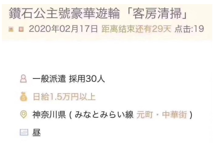 応募するアル!中国人の間で横浜に停泊中の豪華クルーズ船の客室清掃員バイト急募が話題に