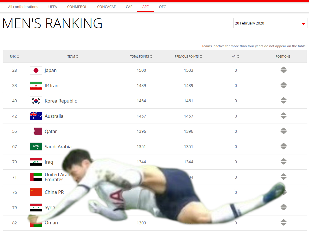 2月20日発表のFIFA公式ランキング
